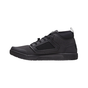 The Flat 3.0 is built for riders who want reliable flat-pedal grip with a classic lace-up fit. Its RideGrip™ Pro rubber compound and WaffleGrip Pro tread lock onto pedal pins for dependable connection, while delivering great traction when walking off the bike. A durable synthetic leather upper with ventilation keeps your feet protected yet cool, and compression laces provide a secure fit that stays put through the roughest trails. A stabilizing neoprene ankle collar, reinforced toe, and molded heel add confidence and support, while the moisture-wicking insole keeps you fresh during long, demanding days in the saddle.