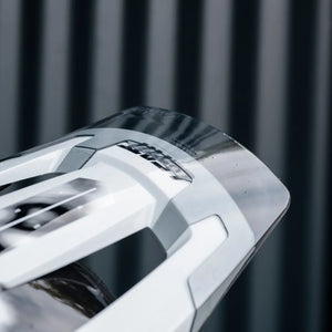 VISOR: Visor with breakaway function for rotational impact force reduction • Visor-Extension for bad weather conditions in semi-transparent gunsmoke color