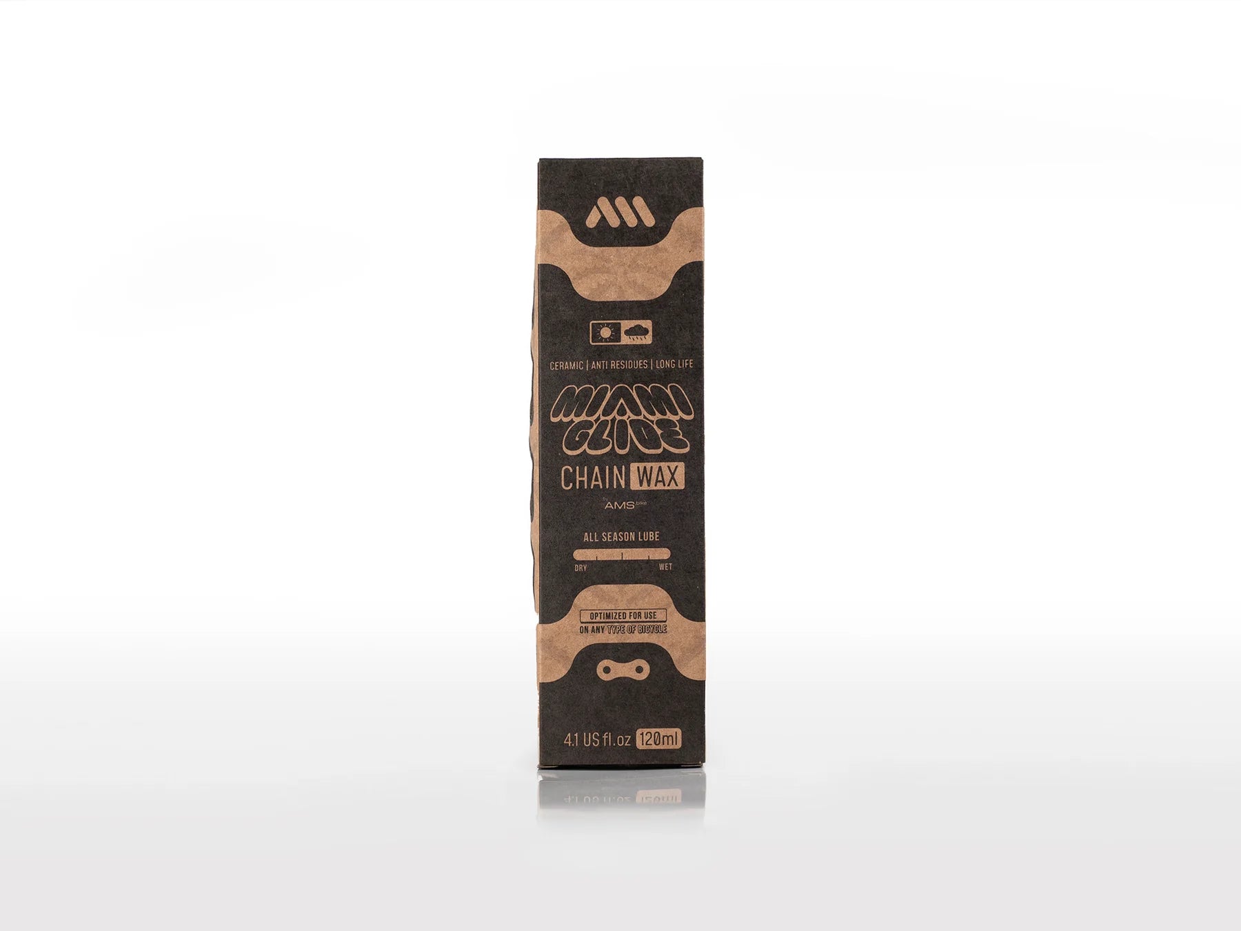 AMS Miami Glide Chain Wax is a wax-based lubricant designed for road cycling, gravel and mountain biking. It keeps your chain clean, quiet, and efficient, reducing wear. Unlike traditional wet lubes that attract debris or dry lubes that wear off quickly, AMS Miami Glide Chain Wax provides long-lasting performance.
